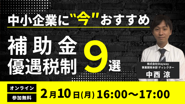 【2/10(火)16:00~17:00】中小企業に“今”おすすめの補助金・優遇税制9選