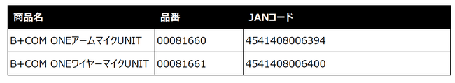 B+COMシリーズ スタンダードモデル「B+COM ONE アームマイク UNIT / ワイヤーマイク UNIT」生産終了のお知らせ