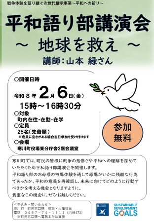 【神奈川県寒川町】平和語り部講演会~地球を救え~参加者募集中!
