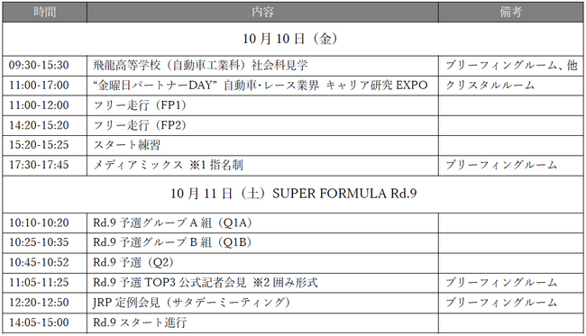 2025年 全日本スーパーフォーミュラ選手権 第9・10戦富⼠スピードウェイ 取材に関するご案内(最終)
