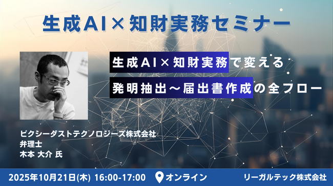 【2025年10月21日(火)16時開催@オンライン】知財×AIリーガルテックセミナー(第18回)