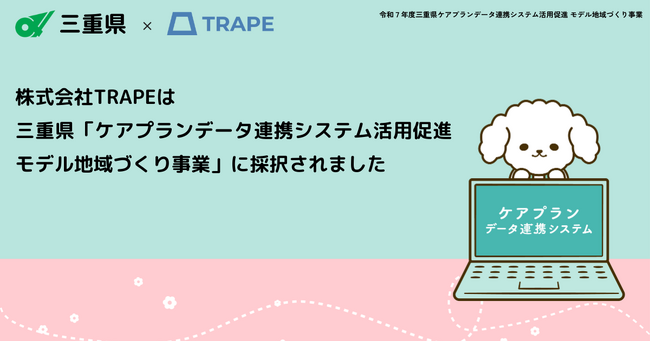 株式会社TRAPE、三重県「ケアプランデータ連携システム活用促進 モデル地域づくり事業」に採択されました