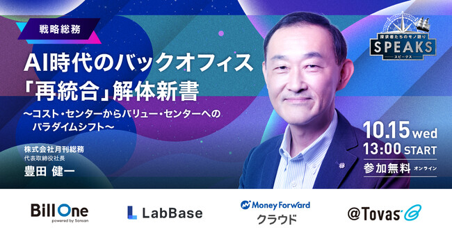 【申込者限定配信】月間総務 豊田氏が語る「AI時代のバックオフィス再統合~バリューセンターへの組織変革~」|10/15(水)|SPEAKS バックオフィス経営変革サミット