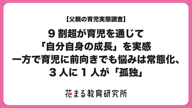 父親の9割超が育児を通じて「自分自身の成長」を実感、一方で育児に前向きでも悩みは常態化、3人に1人が「孤独」と回答【“花まる教育研究所”を設立、第1弾調査】