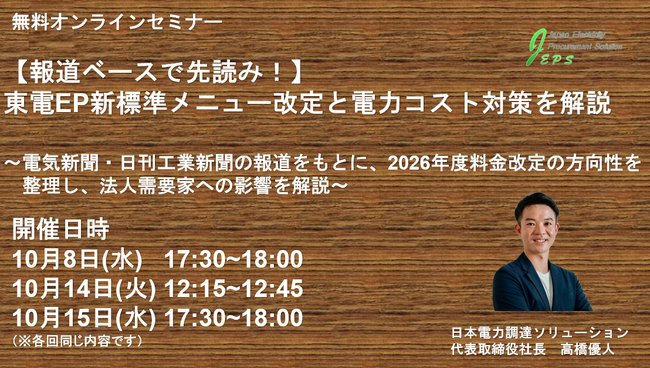 【報道ベースで先読み!】東電EP新標準メニュー改定と電力コスト対策セミナーを開催
