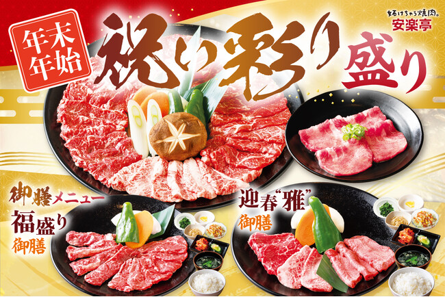 【安楽亭】年末年始は“ごちそう焼肉”12月27日~1月12日まで期間限定メニュー♪みんなで囲む大皿焼肉も、きちんと食べたいお食事時間も。「祝い彩り盛り」と「御膳メニュー」で、選べるごちそう焼肉時間を。