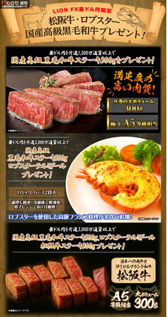 LION FX豪ドル円限定 松阪牛・ロブスター・国産高級黒毛和牛プレゼント!を実施!