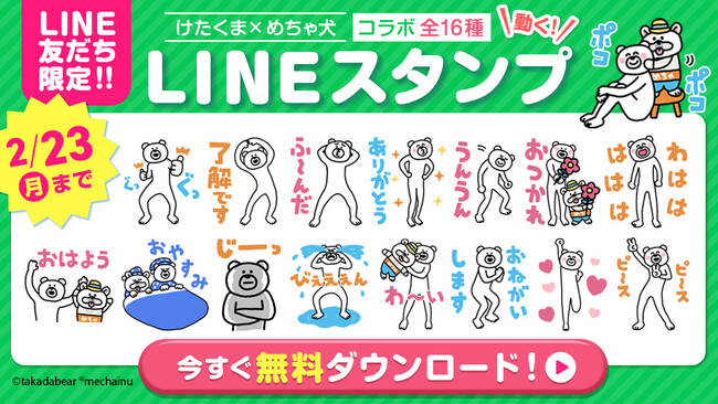 「けたくま」×「めちゃ犬」のコラボLINEスタンプが登場!本日より期間限定の無料配信を開始