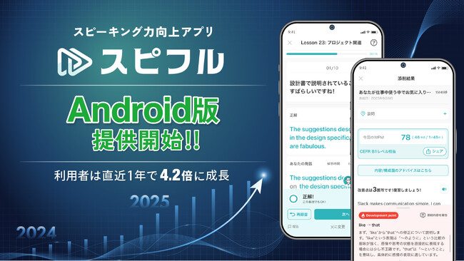 スピーキング力向上アプリ「スピフル」、Android版提供開始