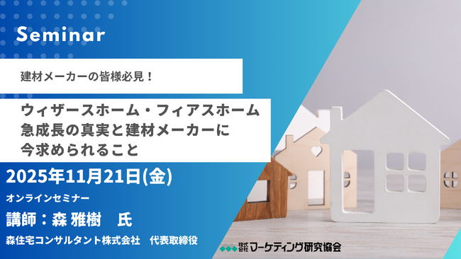 建材メーカー向けオンラインセミナー「ウィザースホーム・フィアスホーム急成長の真実と建材メーカーに今求められること」11月21開催。マーケティング研究協会