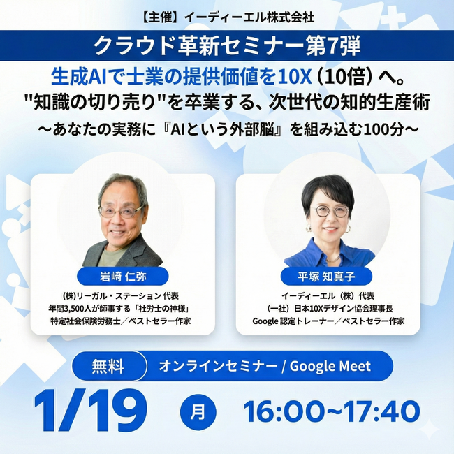 【1月19日開催】生成AIで士業の提供価値を10X(10倍)へ。”知識の切り売り”を卒業する、次世代の知的生産術
