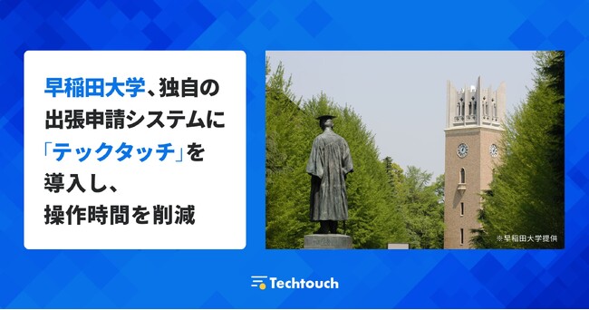 早稲田大学、独自の出張申請システムに「テックタッチ」を導入し、操作時間を削減