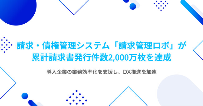 請求・債権管理システム「請求管理ロボ」が累計請求書発行件数2,000万枚を達成
