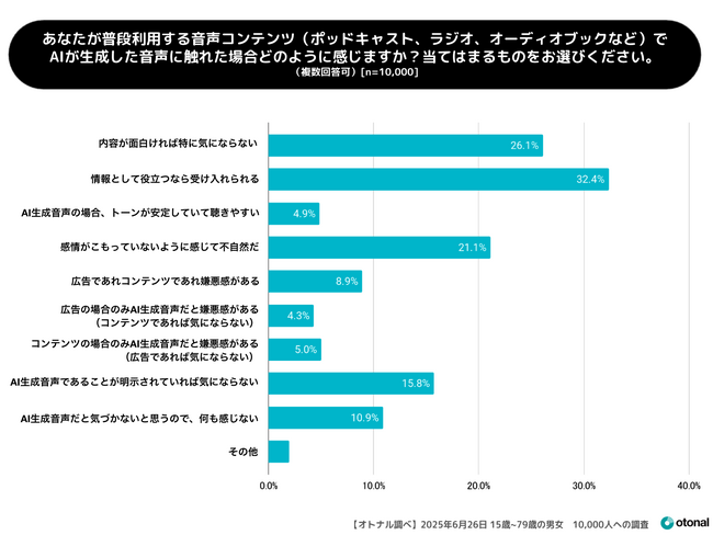 オトナル、AIコンテンツへの印象を調査。AI生成された音声への意識を年代別に分析
