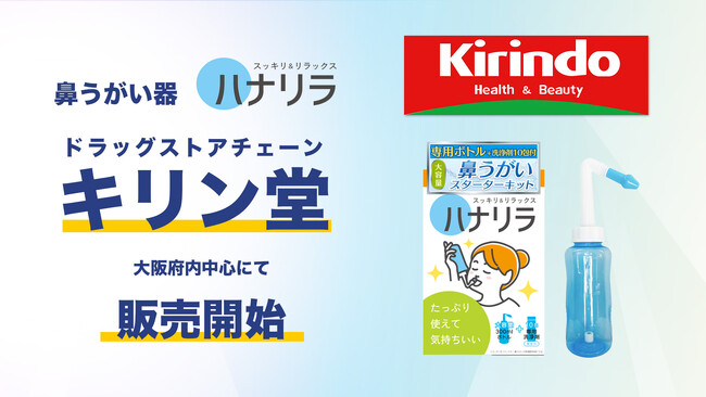 鼻うがい器「ハナリラ」と「ハナリラ専用洗浄剤」がドラッグストアチェーンキリン堂、大阪府内中心に関西地区で販売開始
