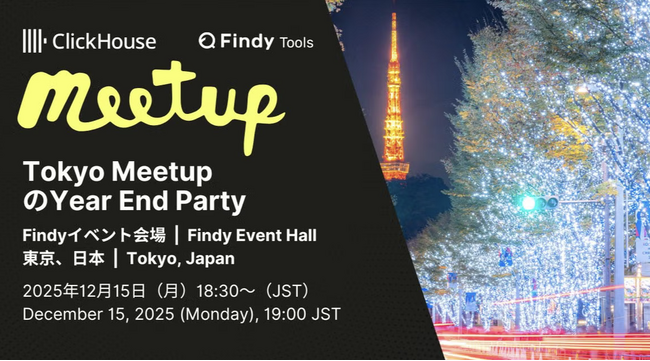 ClickHouse、12月15日「ClickHouse Tokyo Meetup & Year End Party」を開催
