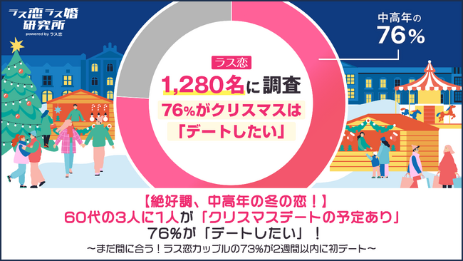 【絶好調、中高年の冬の恋!】60代の3人に1人が「クリスマスデートの予定あり」、76%が「デートしたい」!
