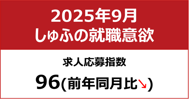 【しゅふの就職意欲調査 2025年9月】しゅふ求人の応募指数96(前月比-2)