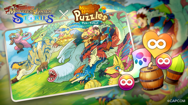 『モンスターハンターパズル アイルーアイランド』で『モンスターハンターストーリーズ』シリーズとのコラボログインボーナスを配布!