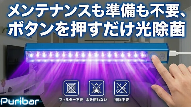 【いつもの除菌を手軽に】可視光で空間もモノも手軽にケア|可視光線除菌デバイス「Puribar」がMakuakeにて先行販売開始