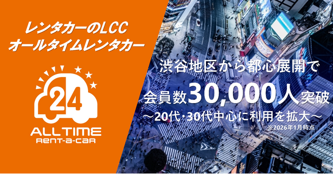 24時間利用可能なカーシェア型LCCレンタカー「オールタイムレンタカー」会員数30,000人突破