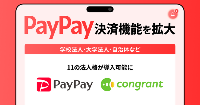 コングラント、PayPay決済機能を拡大。学校法人・大学法人・自治体など11の法人格が導入可能に