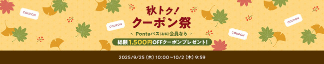 Pontaパス会員ならau PAY マーケットでのお買い物がさらにおトク!総額1,500円割引クーポンを配布する「秋トク!クーポン祭」を開催