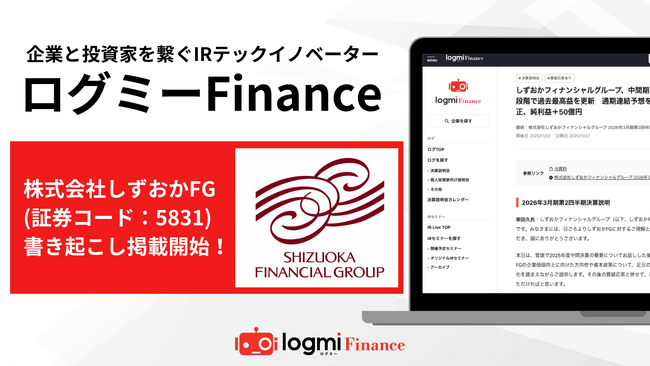 しずおかフィナンシャルグループがログミーFinanceに決算説明会の全文書き起こしを公開