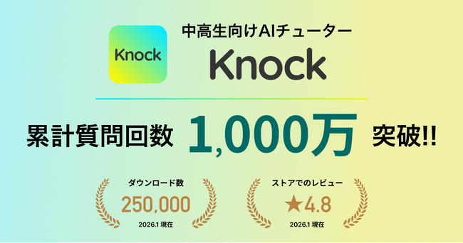 AIチューター「Knock」、リリースから1年で主に中高生の学習時の質問に1000万回以上回答。