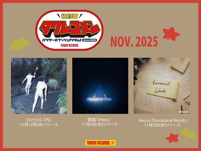 全国のタワレコバイヤーによるネクストブレイク・アーティストのガチ・レコメン&激推し企画タワレコメン11月度 ラインナップが決定!