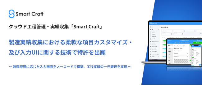 Smart Craft、製造実績収集における柔軟な項目カスタマイズ・及び入力UIに関する技術で特許を出願