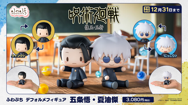 表情を変えて楽しめる!「呪術廻戦 懐玉・玉折 ふわぷち デフォルメフィギュア 五条悟・夏油傑」が予約受付開始
