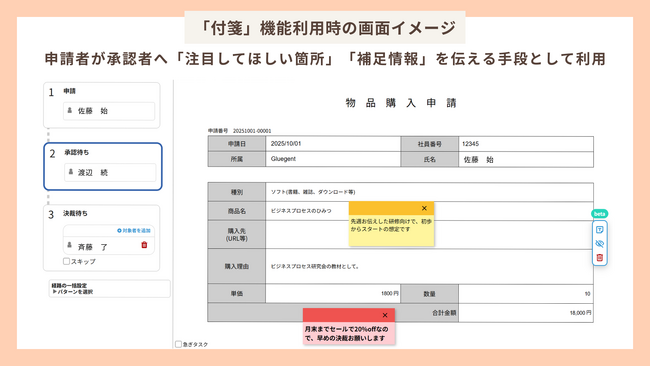 サイオステクノロジー、クラウドワークフロー「グルージェントフロー」で「付箋」機能を提供開始
