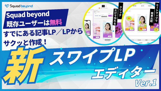 Squad beyond、スワイプLP専用エディター(β版)をリリース。業界定番フォーマットを“誰でも”直感操作で制作可能に