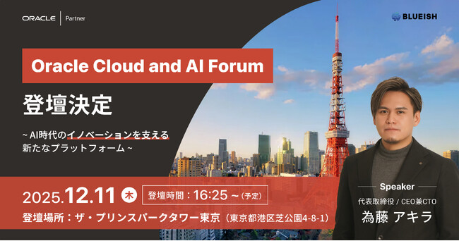 BLUEISH代表 為藤アキラが日本オラクル株式会社主催「Oracle Cloud and AI Forum」に登壇決定 – AI時代のイノベーションを支える新たなプラットフォーム
