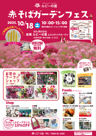 長野県 駒ヶ根市「ルビーの里」で秋の収穫祭!グルメ・音楽・体験が満載の『赤そばガーデンフェス』を10月18日(土)に開催