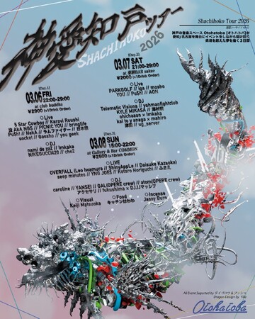 神戸のカルチャースペース『Otohatoba』が愛知・名古屋を股にかけた音楽イベント主催ツアー【神愛知戸 -SHACHIHOKO- ツアー】を3日間に渡り開催。