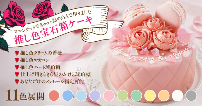 推しの記念日を華やかにお祝い! 推し活アプリOshibanaから、11色のカラー展開で推しの大切な日を彩る「推し色宝石箱ケーキ」を販売開始