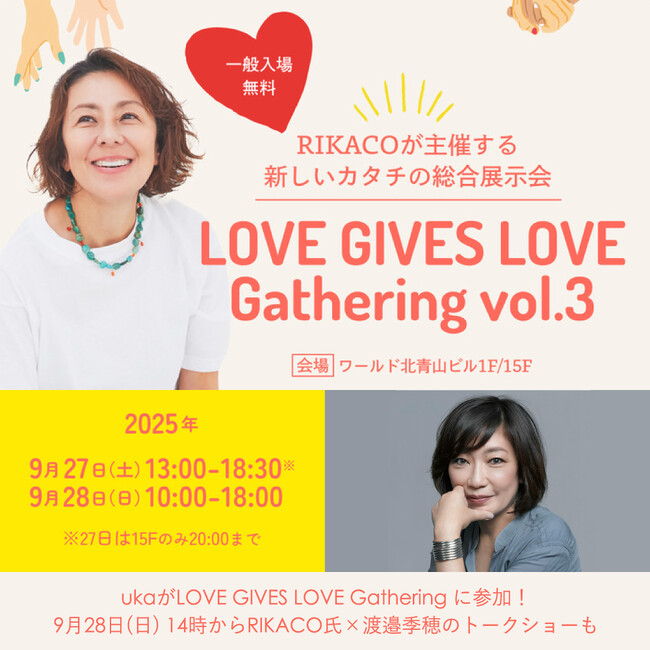 ukaがLOVE GIVES LOVE Gathering に参加! 9月28日(日) 14時からRIKACO氏×渡邉季穂のトークショーも