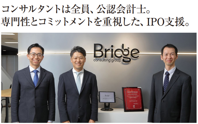 ブリッジコンサルティンググループ、東京証券取引所によるインタビュー公開。コンサルタント全員が公認会計士という国内でも稀有なJ-Adviserとして紹介。自社の上場体験を踏まえ、支援の強みを明かす