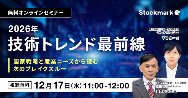 【12月17日(水) 無料セミナー】『2026年 技術トレンド最前線 ― 国家戦略と産業ニーズから読む次のブレイクスルー』(ストックマーク主催)