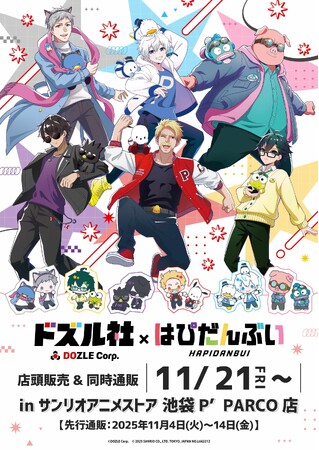 「ドズル社×はぴだんぶい」コラボグッズが販売中! 等身コラボイラスト&ミニキャラコラボイラストを使用したグッズが登場