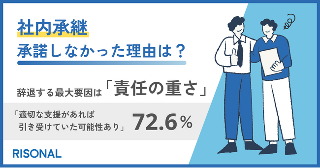 社内承継を辞退する最大要因は“責任の重さ”。72.6%が、支援があれば継いでいた可能性を示唆