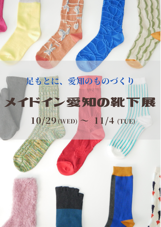 【モノづくり愛知の真髄】 国内流通シェア0.2%の希少な「愛知製靴下」が松坂屋名古屋店本館6階に初集結。大量生産では作れない職人技ソックスの祭典「メイドイン愛知の靴下展」。10月29日から1週間開催。