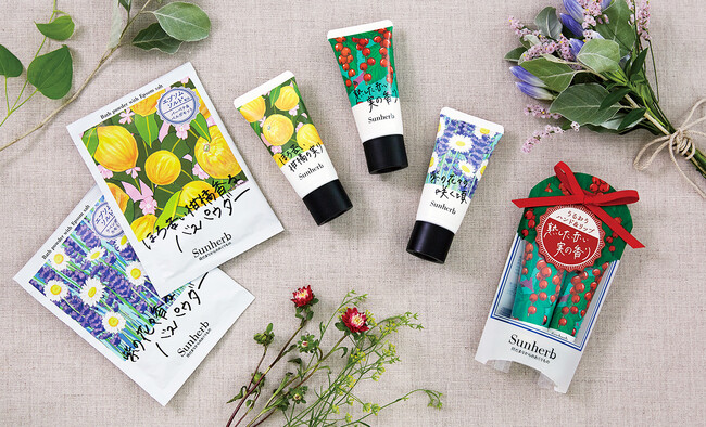 新しいバス&ボディーギフトシリーズ【サンハーブ 陽だまりからのおくりもの】ハンド&リップの保湿ギフトやバスパウダー登場