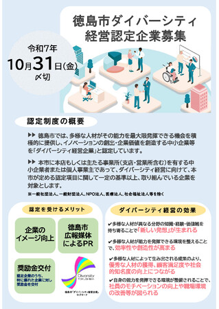 【徳島市】徳島市ダイバーシティ経営認定企業を募集中!