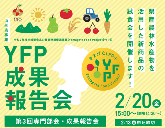山形県産農林水産物や県産未利用資源を活用し6商品を開発!2月20日(金)15:00より、山形グランドホテルにて、成果報告会・第3回専門部会を開催いたします(オンライン傍聴可)。