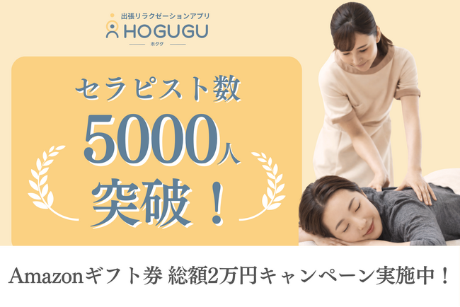 出張リラクゼーションサービス「HOGUGU(ホググ)」、セラピスト登録数が5,000名を突破!