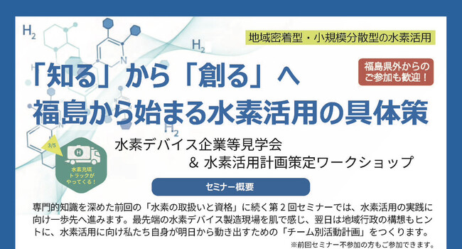 【福島から始まる水素活用の具体策】「第2回 水素デバイス企業等見学会&水素活用計画策定ワークショップ」を3月5日・6日に開催