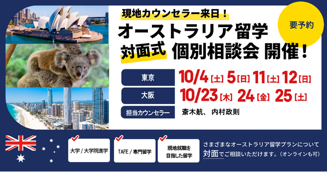 留学支援サービス「Mirai Bridge」、オーストラリア現地在住スタッフが来日し、大学進学・永住権取得を目指したオーストラリア留学個別説明会を日本で開催
